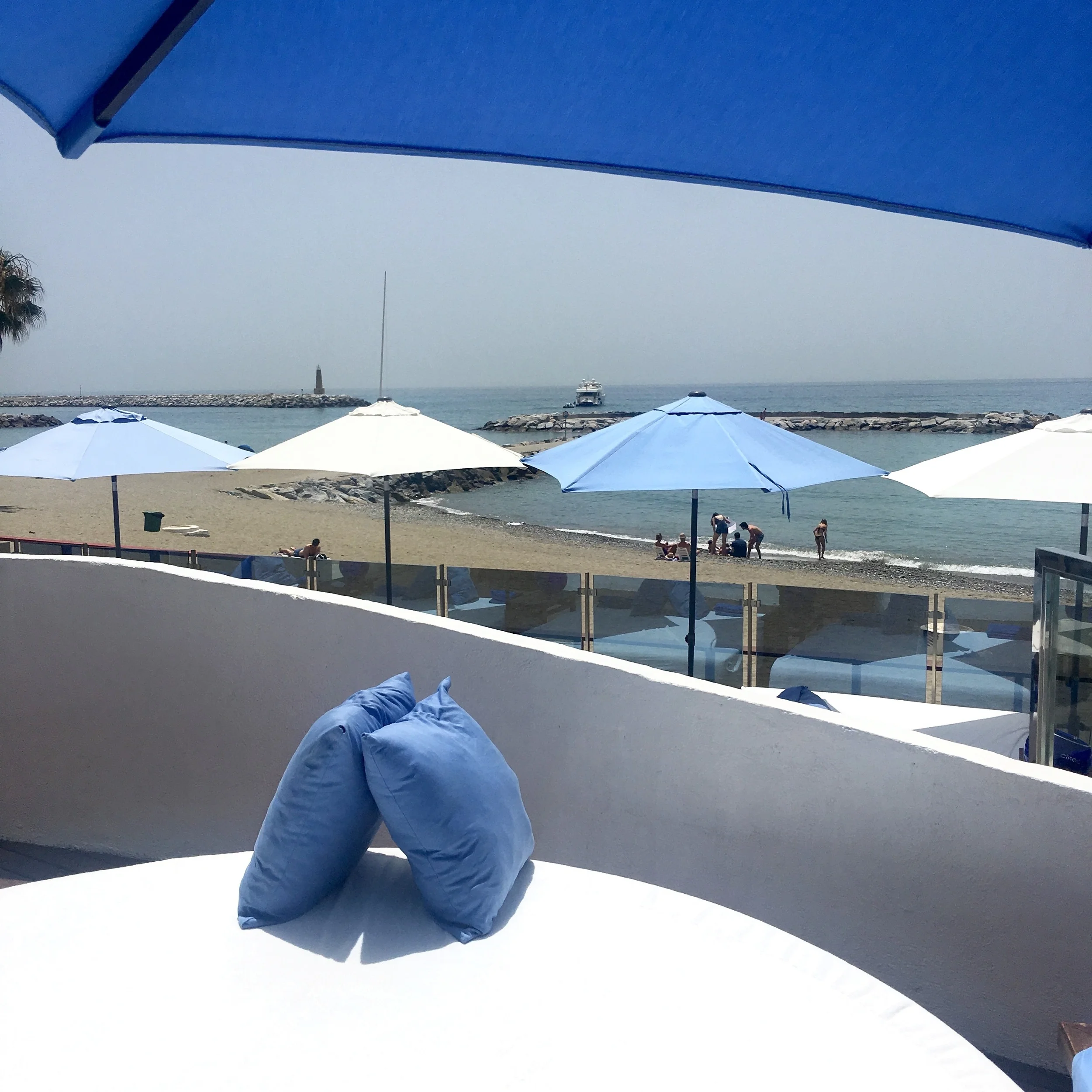 After a full day and night of partying, we took it easy on the Monday and headed to Olivia's La Cala for lunch by the beach..This is one of the most chic lunch locations I've ever been to, all white decor and amazing views of the sea from the outside terrace.